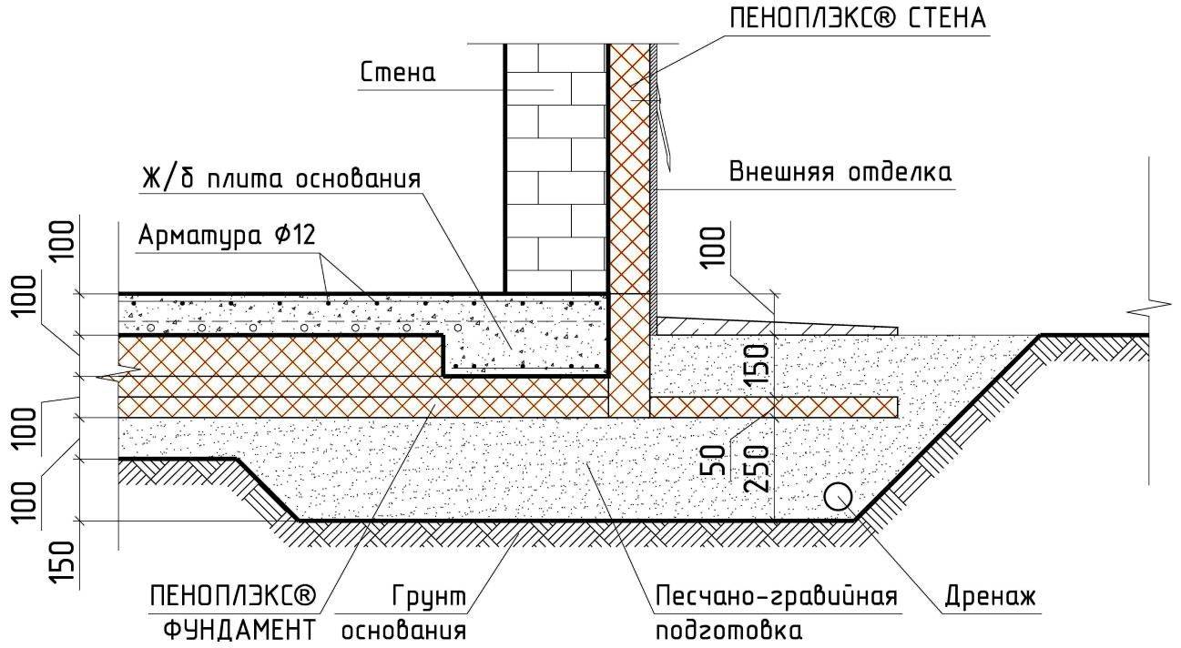 Толщина теплоизоляции по горизонтали должна быть не менее толщины теплоизоляции фундамента по вертикали.