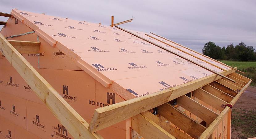 Теплоизоляция скатной крыши панелями пеноплексИсточник dmcp.ru