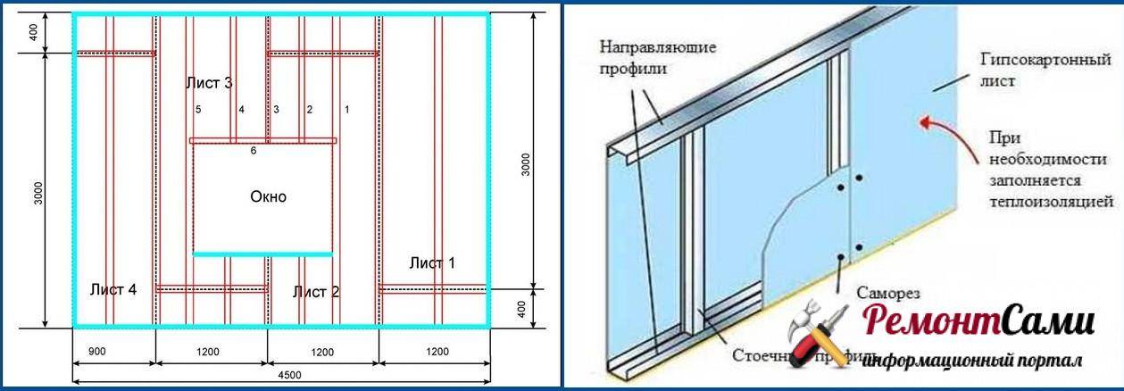Оно заключается в прочерчивании периметра и продумывании, как будет расположен каркас на стене. Достаточно простого карандаша и строительного уровня.