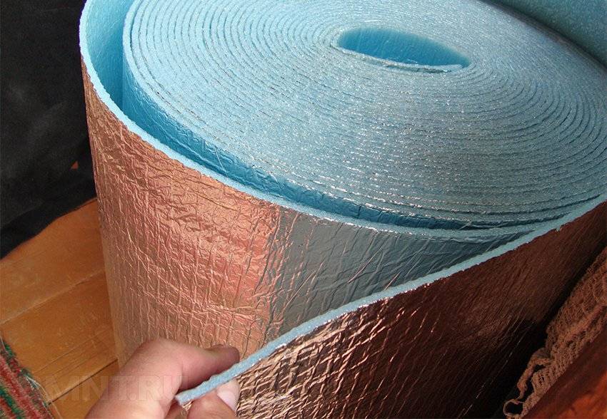 Вспененный полиэтилен производится в виде тонких листов 6—10 мм толщиной со слоем алюминиевой фольги, приклеенным с одной стороны. Роль последней – отражать инфракрасное тепло обратно в помещение.