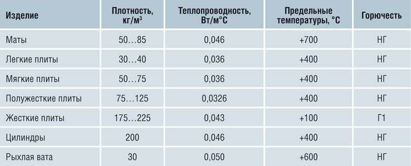 Характеристики разных видов минеральной ватыИсточник pro-uteplenie.ru