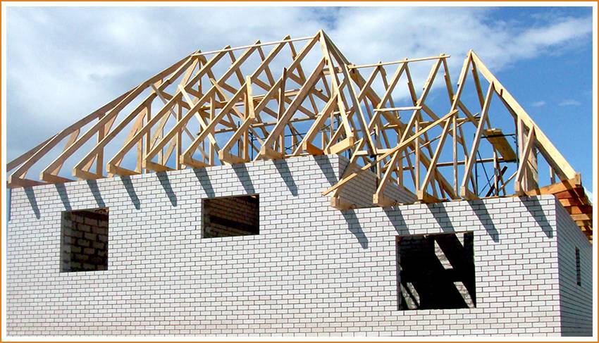 - Мауэрлата, укладываемого по периметру всех четырех несущих стен из цельного бруса с сечением не менее 100 мм, перераспределяющего нагрузки и служащего опорой для нижних частей стропильных ног.
