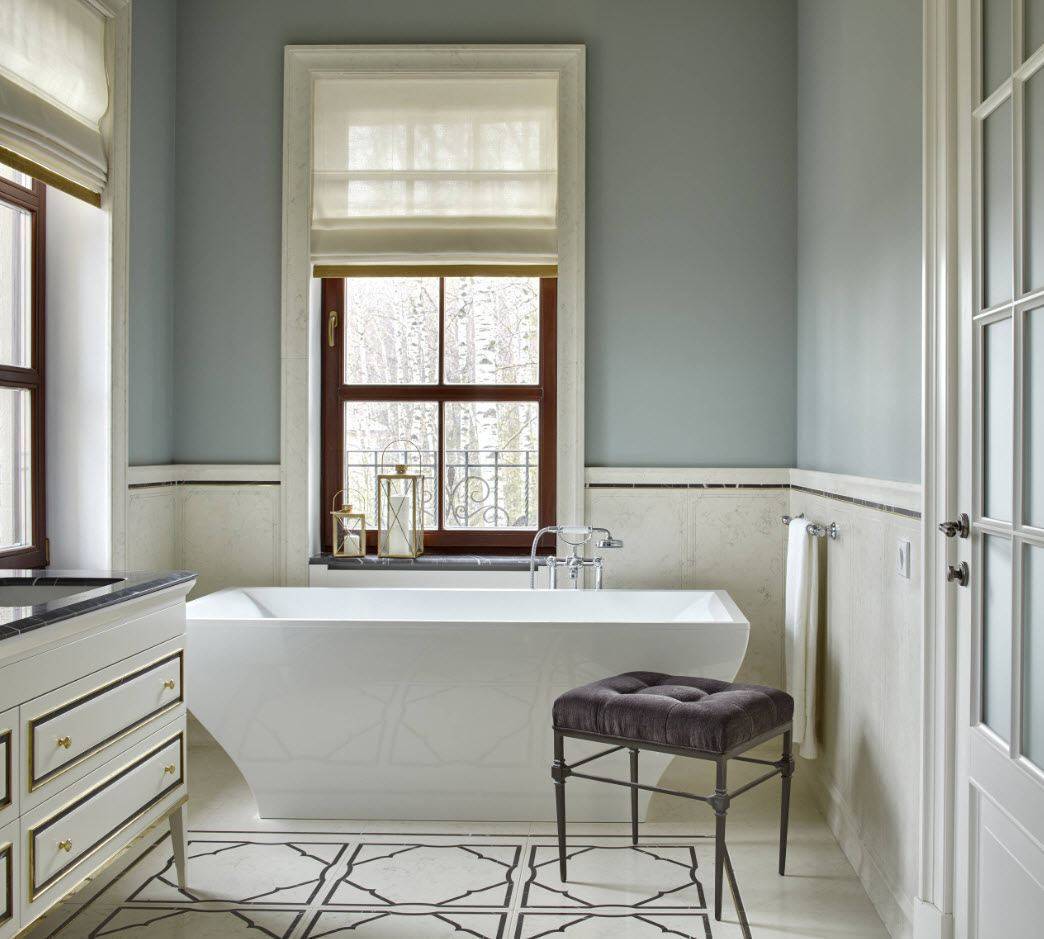 Сочетание краски и плитки в интерьере ванной