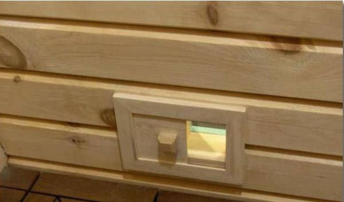 - Парилка — утепленная форточка, расположенная ниже полка, регулируемая вытяжка, которая представляет собой вертикальный короб, заборное отверстие которого 150 см² расположено ниже полка, а выход из трубы на улицу осуществляется возле потолка. Один из каналов регулируемого притока возле печки, площадь сечения 150 см².