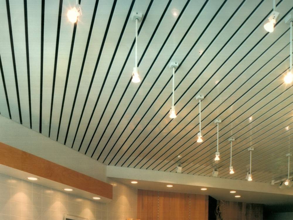 Алюминиевые реечные конструкции применяются уже в нежилых помещениях. Ширина рейки варьируется от 5 до 20 см, а стандартная длина – три или четыре метра. Для отделки потолков большой площади, как правило, заказывают рейки от 6 метров длиной и выше непосредственно на заводе-производителе.