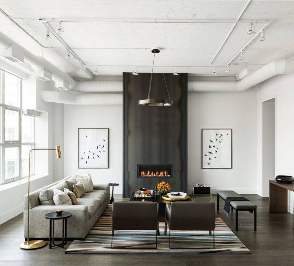 Круглые вентиляционные трубы в гостиной лофт