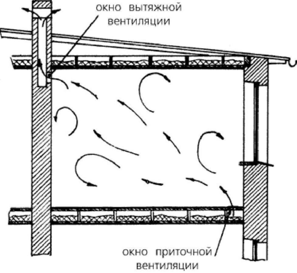 - для эффективной циркуляции воздушных потоков необходимо обеспечить оптимальный уровень перепадов температур – чем он выше и лучше, тем быстрее происходит смена воздуха в помещении;