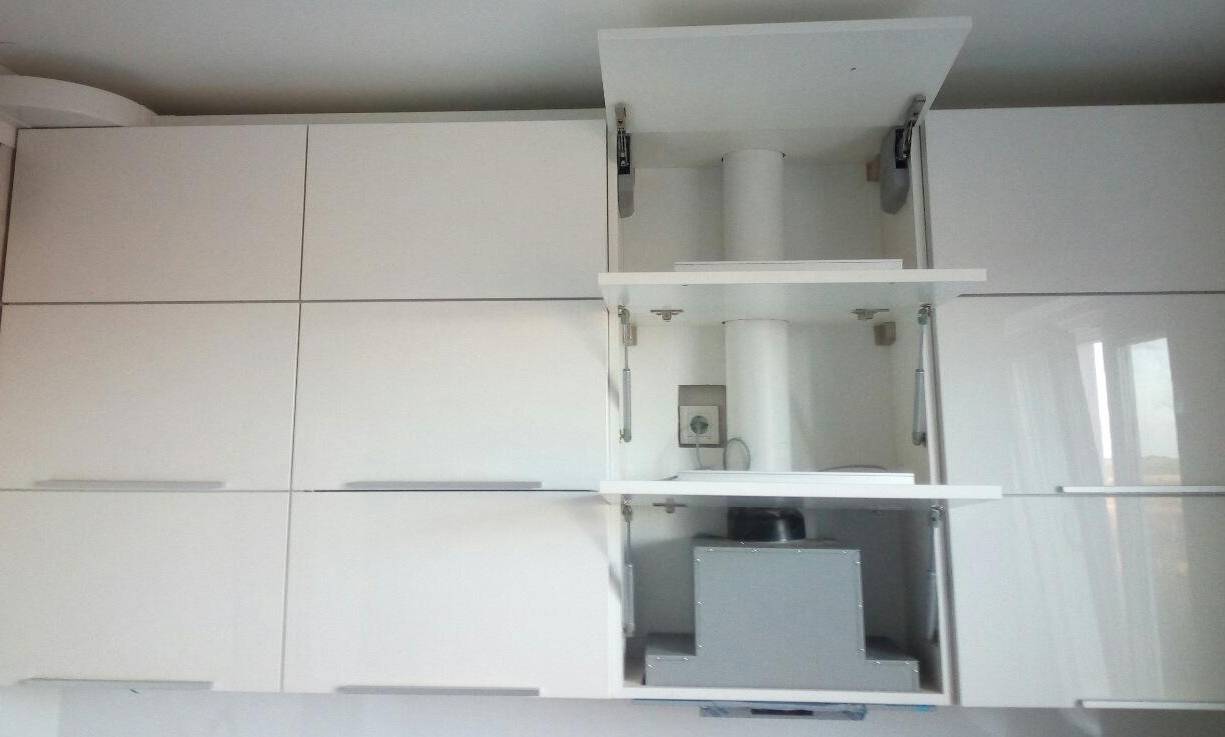 Если у вас не получается сделать необходимый уровень из-за поверхности шкафчика, который установлен над плитой, потребуется его немного подпилить. В большинстве случаев, вы сможете определить высоту нижней части вытяжки при помощи мотора устройства. Как правило, размер составляет 0,5-0,7 метра.