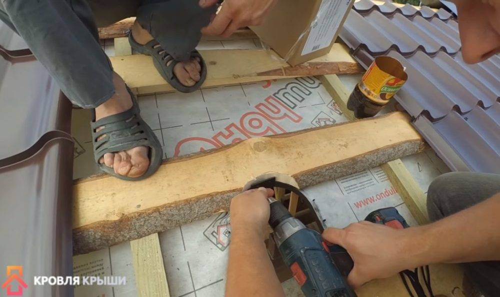 гидроизоляционная плёнка на всём протяжении вдоль конькового прогона, и выполняют разрыв для лёгкого оттока воздуха из-под крыши;