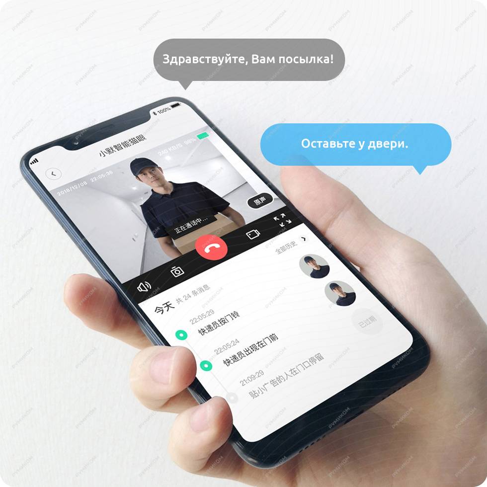 Встроенная функция электронного звонка позволяет через приложение MiHome в режиме реального времени следить за происходящим за дверью и даже общаться с гостями у двери.