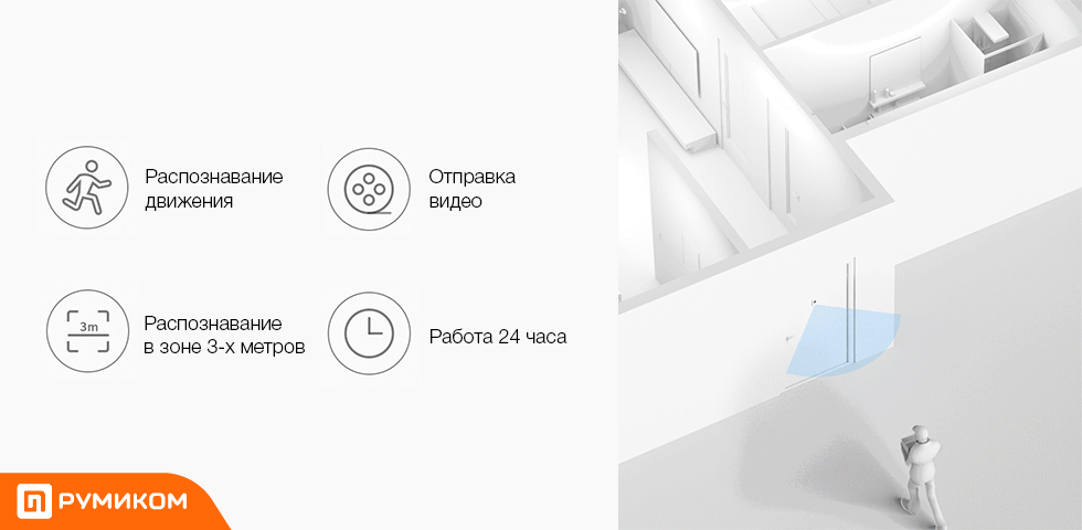 - Сработка датчика движения – 3 м.