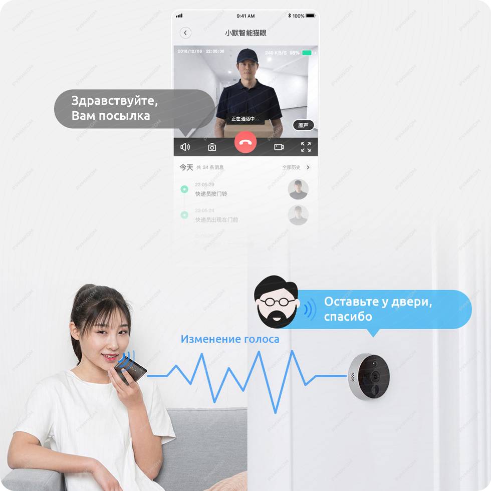Приложение MiHome открывает доступ к голосовому общению через глазок, при этом для дополнительной безопасности оно может заменять женский голос на мужской, чтобы даже самые хрупкие особы чувствовали себя как за каменной стеной.