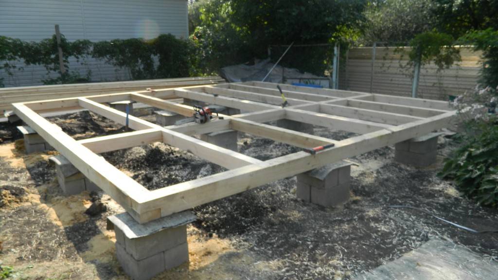 После вкручивания таких опор, они срезаются на заданной высоте и соединяются горизонтальными балками — ростверком, выполняющим роль основания дома, на которое укладывается обвязка, настилается пол и затем возводятся стены.