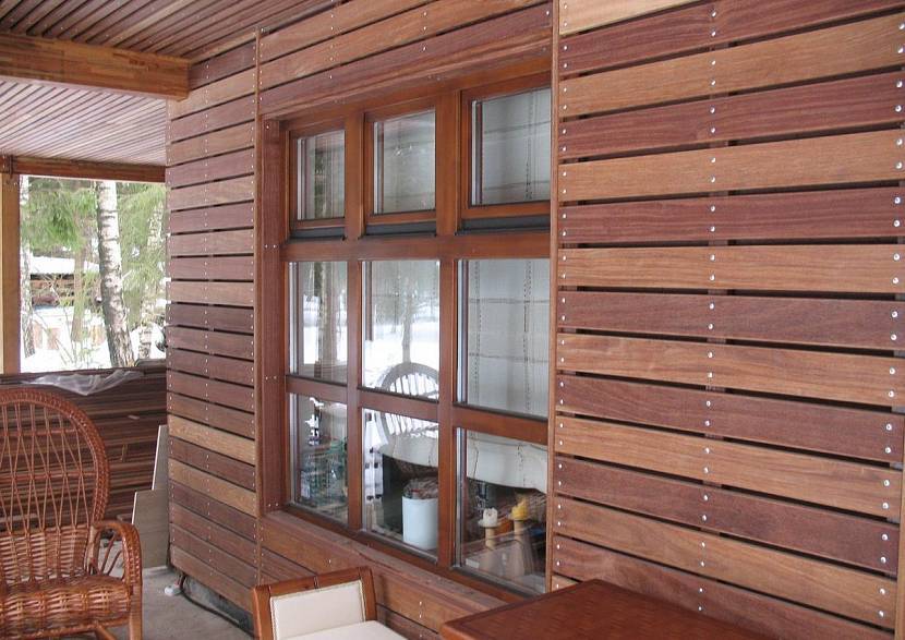 Для внутренней отделки лучше подойдут ламели толщиной не более 25 мм. При увеличении толщины могут возникнуть сложности с качественным креплением обрешётки. Кроме того, это может привести к уменьшению внутреннего пространства помещения, что крайне нежелательно. К недостаткам материала можно отнести слишком низкую паропроницаемость и повышенную горючесть.