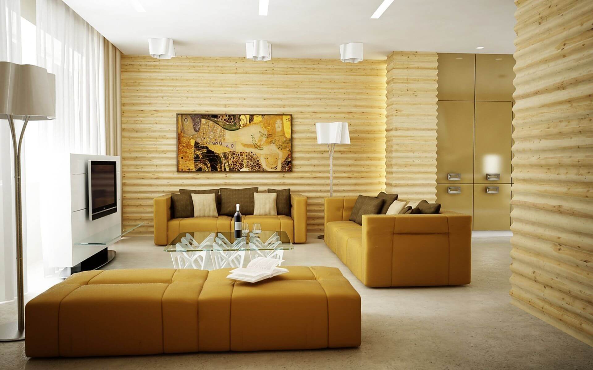 В идеале, для выполнения отделки стен, потолка и пола брусового дома должен применяться натуральный материал. Это позволяет создать для семьи комфортные условия для проживания, здоровый микроклимат в доме, привлекательный интерьер комнат. Одним из них сегодня является имитация бруса, которая используется для внутренних и внешних работ. Частное строительство сегодня очень широко применяет подобные изделия. Причем, строительство и последующая обшивка сруба сайдингом изнутри востребована на отечественном рынке, как среди опытных строителей и дизайнеров интерьеров, экстерьеров, так и среди обычных покупателей, стремящихся привнести в свой дом атмосферу уюта и тепла. На фото ниже представлен интерьер сруба с подобным дизайном.