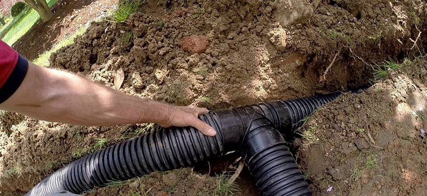 Укладку глубинного дренажа на участке желательно провести уже после всех тяжелых строительных работ, чтобы коммуникации не просели и не треснули в результате интенсивной эксплуатационной нагрузки