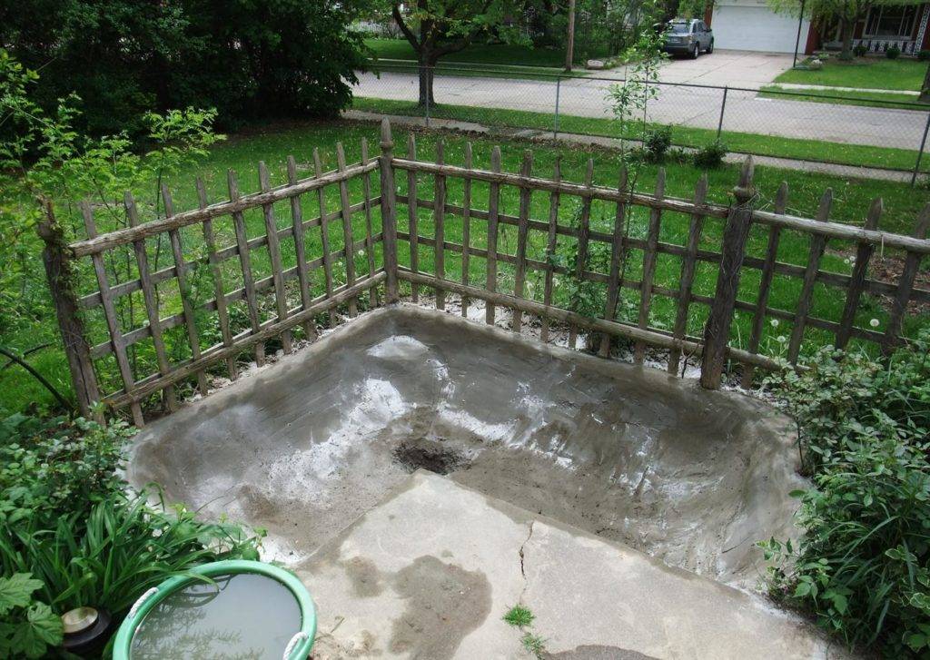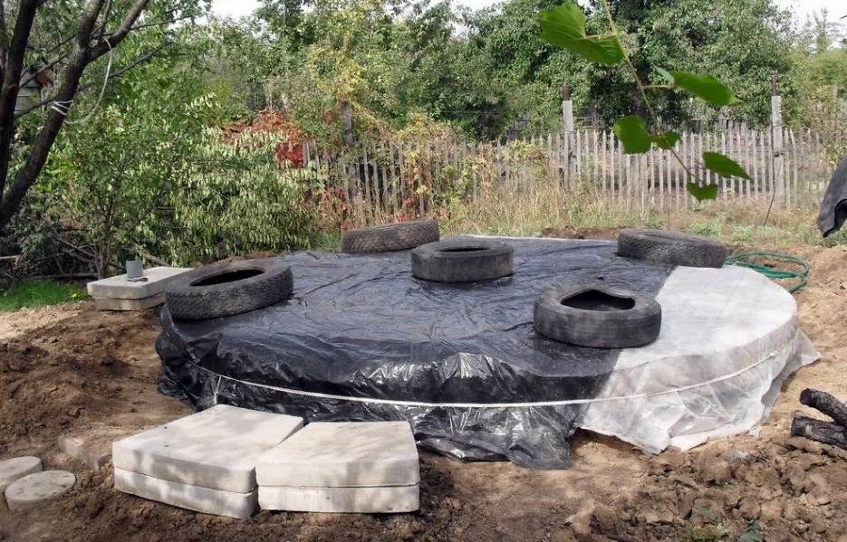 Самым надёжным и долговечным способом гидроизоляции является классический вариант — заливка бетоном: на дно изначально выстилают плёнку, затем укладывают каркас из проволоки и заливают слоем бетона.