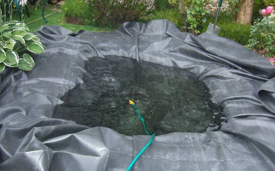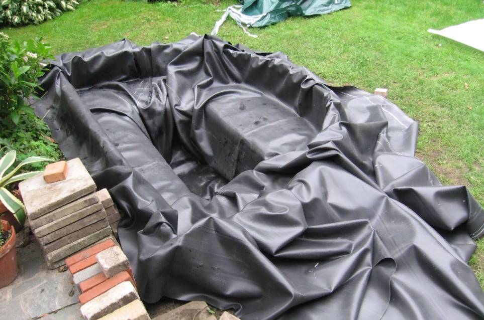 - котлован выстилается цельным куском ПВХ материала с обязательным закрытием краев;