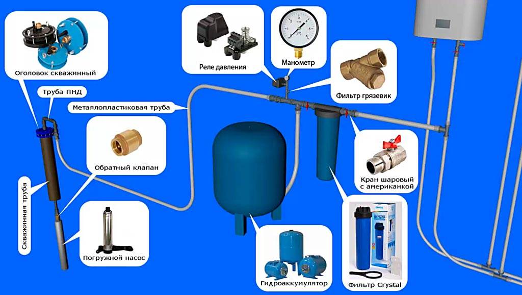 Водопровод частного дома от скважины с гидроаккумулятором имеет свои особенности.