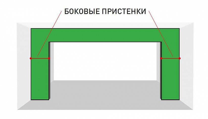Боковые пристенки – расстояния от границ проема до боковых стен помещения. Они нужны для крепления вертикальных направляющих, по которым движется полотно при подъеме и опускании.