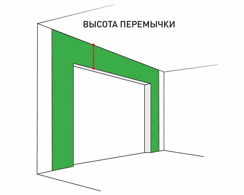 Перемычка (притолока) – это расстояние от верхнего края проема до потолка. Она необходима для установки направляющих профилей и пружинного механизма секционных ворот.