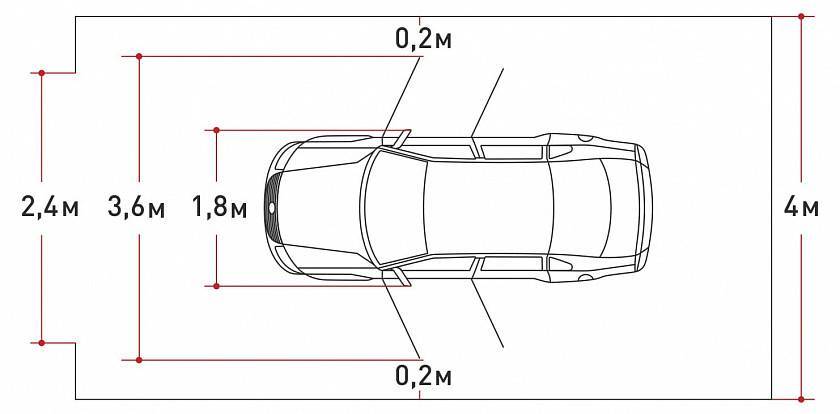 Для удобства посадки и высадки пассажиров ширина гаража должна быть на 20-30 см больше ширины автомобиля с открытыми дверьми.