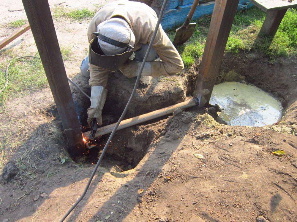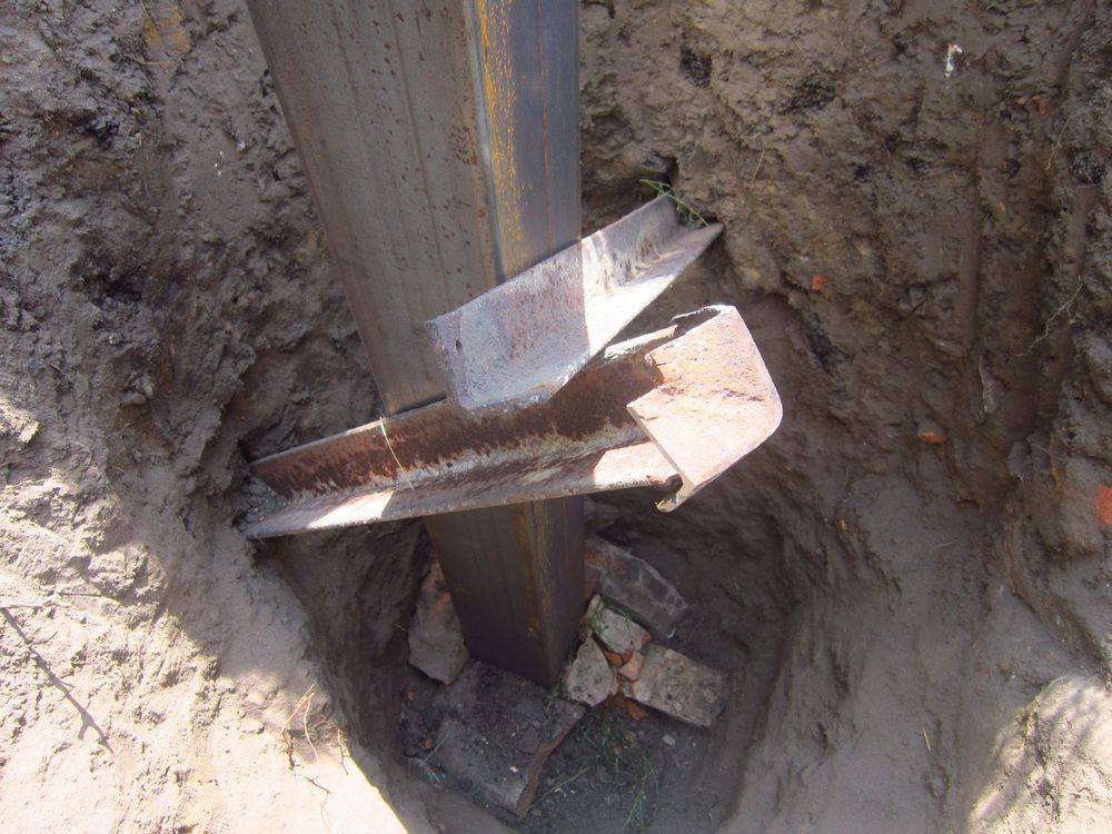 Чтобы металлические опоры были более устойчивыми, мы можем предварительно прикрепить сваркой к их нижним концам по 3-4 горизонтальные планки из стальной арматуры, металлического уголка либо труб.