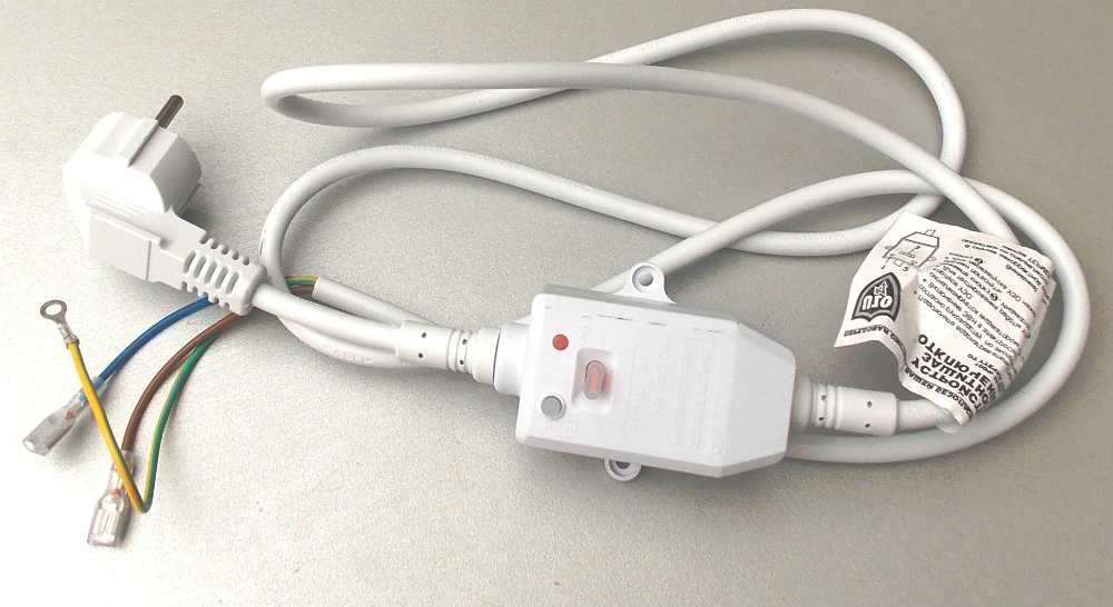 Отдельно отмечаются устройства защитного отключения, устанавливаемые на кабель. Эти приборы смонтированы непосредственно на питающем проводе водонагревателя. Покупать их отдельно не нужно. Обычно они установлены рядом со штепсельной вилкой.