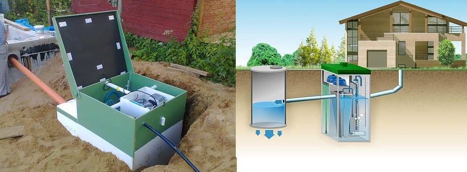 Для самотечного движения канализационных стоков накопительную емкость располагают ниже, чем уровень здания, либо устанавливают насосное оборудование.
