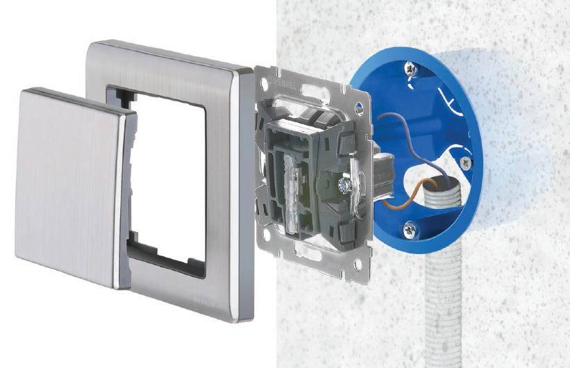 Такой тип выключателя устанавливают в современных квартирах, где электропроводка запрятана в стене