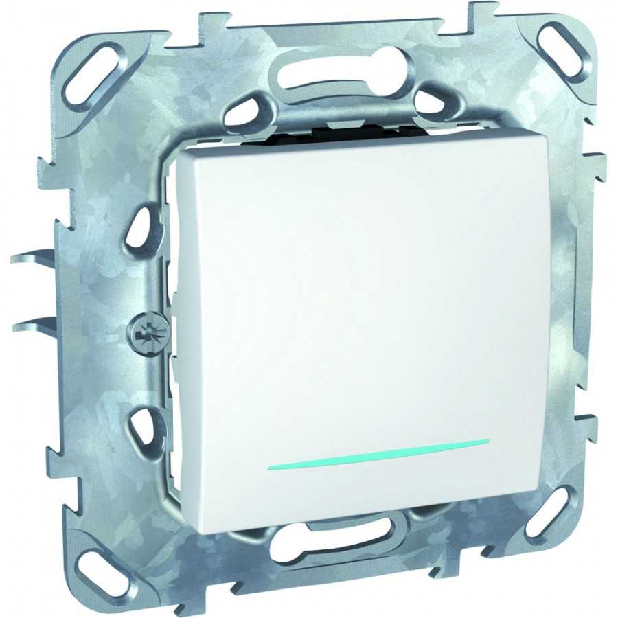 Данный тип выключателя подбирают, если осветительный прибор на одну лампу. Возможно выделить подтип в выключателях с одной клавишей: выключатели с подсветкой. В корпусе имеется светодиодная лампочка, которая помогает обнаружить выключатель в полностью темной комнате.