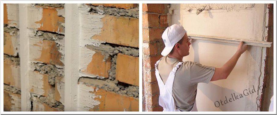 Последовательность действий, как штукатурить без маяков при сильных отклонениях, выражена следующим образом: