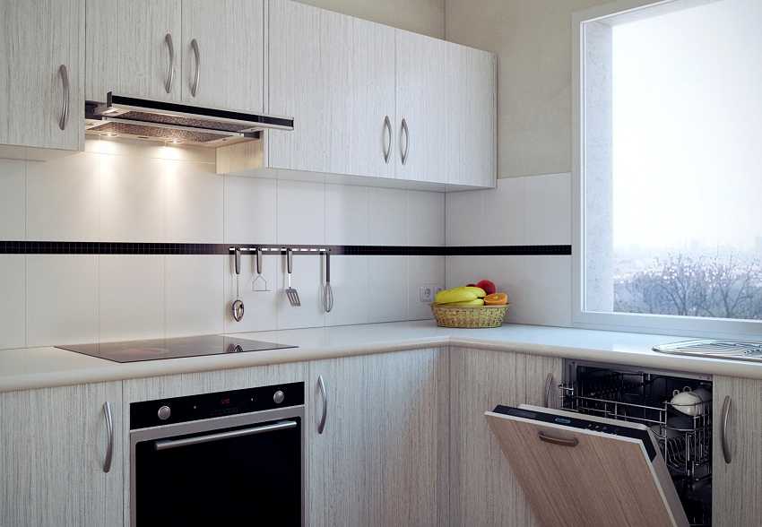 - Произвести монтаж встроенной вытяжки в кухонный шкаф;