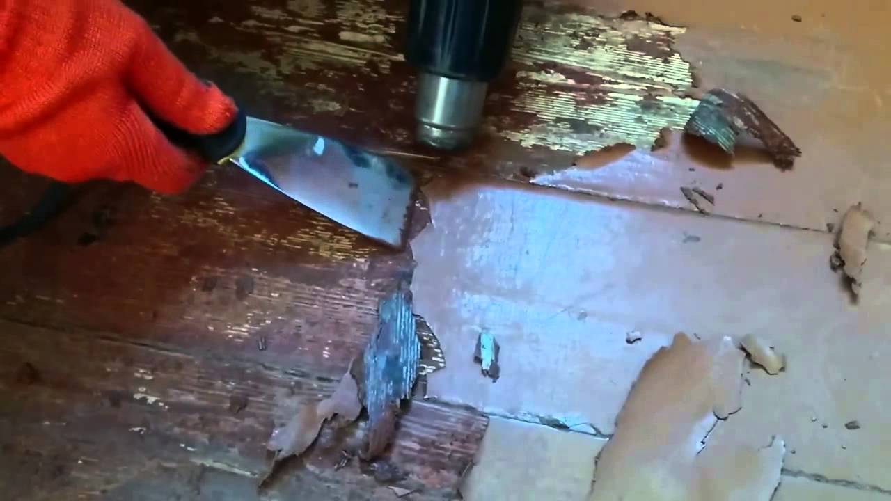 В случае, если удаляется линолеум, то его поддевают с края и по возможности скатывают в рулон. Чтобы упростить задачу, на рулоне можно сделать несколько параллельных надрезов, разделив его на несколько лент.