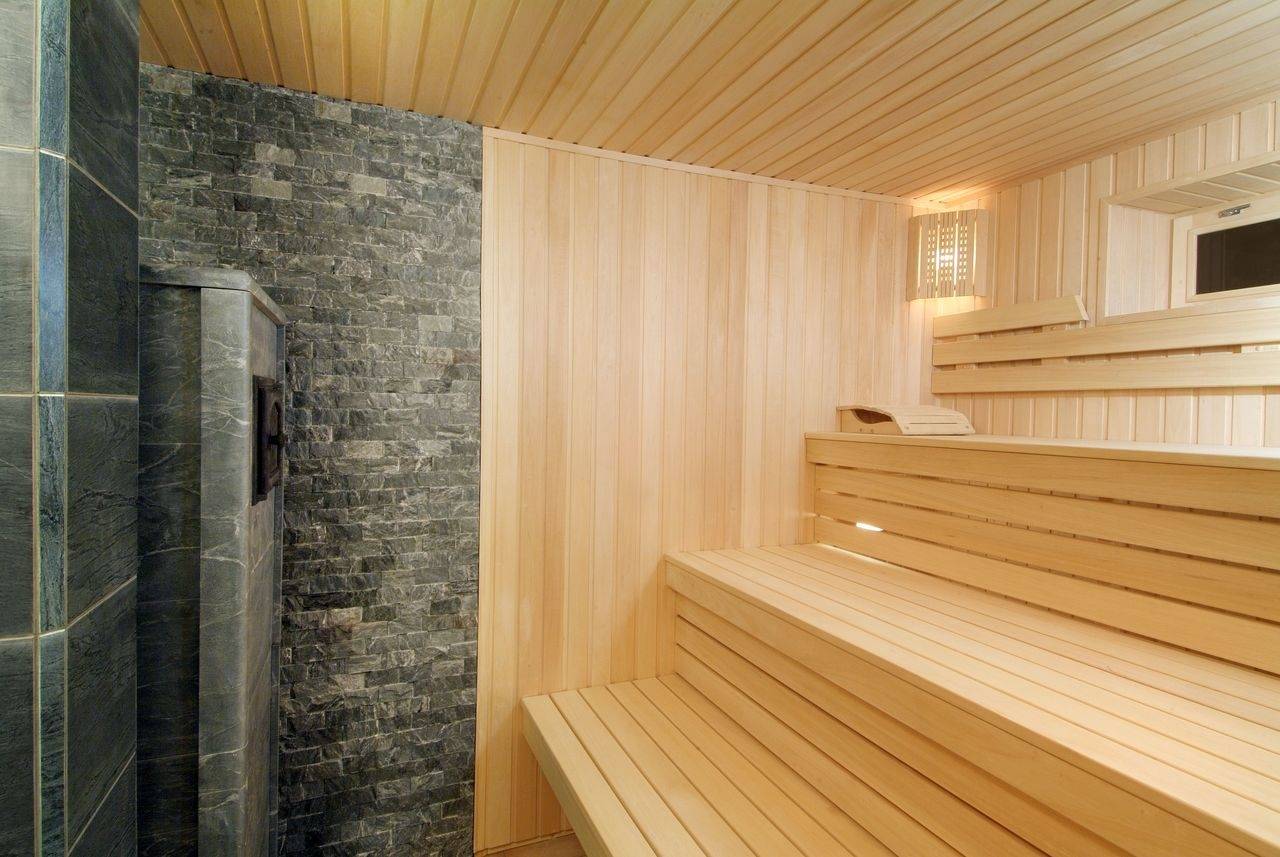 Любые жаростойкие панели для стен должны иметь минимальный технологический зазор для обеспечения вентиляции и снижения теплового воздействия на деревянные поверхности. Практичная облицовка позволит оформить стены парной в едином стиле.