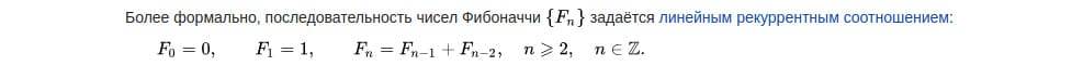 0, 1, 1, 2, 3, 5, 8, 13, 21, 34, 55, 89, 144, 233… и дальше до бесконечности.