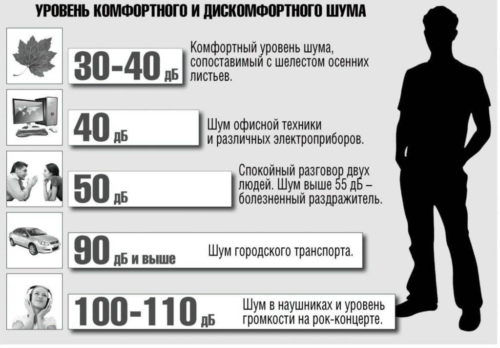 - Днем (в период с 7 до 23 ч) уровень шума не должен быть выше 55 дБ.